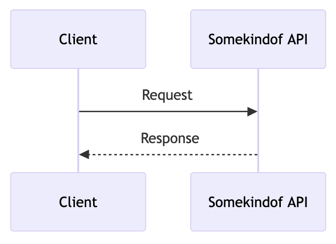 arrow with a dashed line and solid arrowhead on the terminating endA synchronous message reply (for example, an API response).